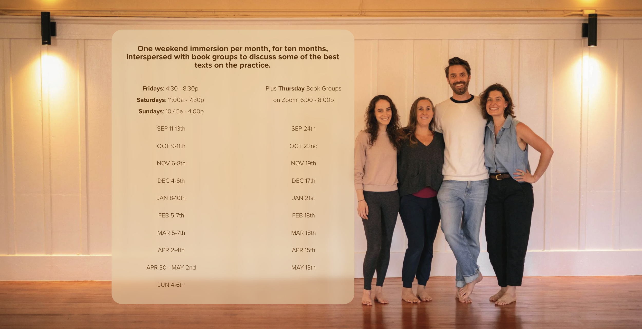 We’ve designed a teacher training that supports the consistency of practice, while uncovering the many details that make it so rich.